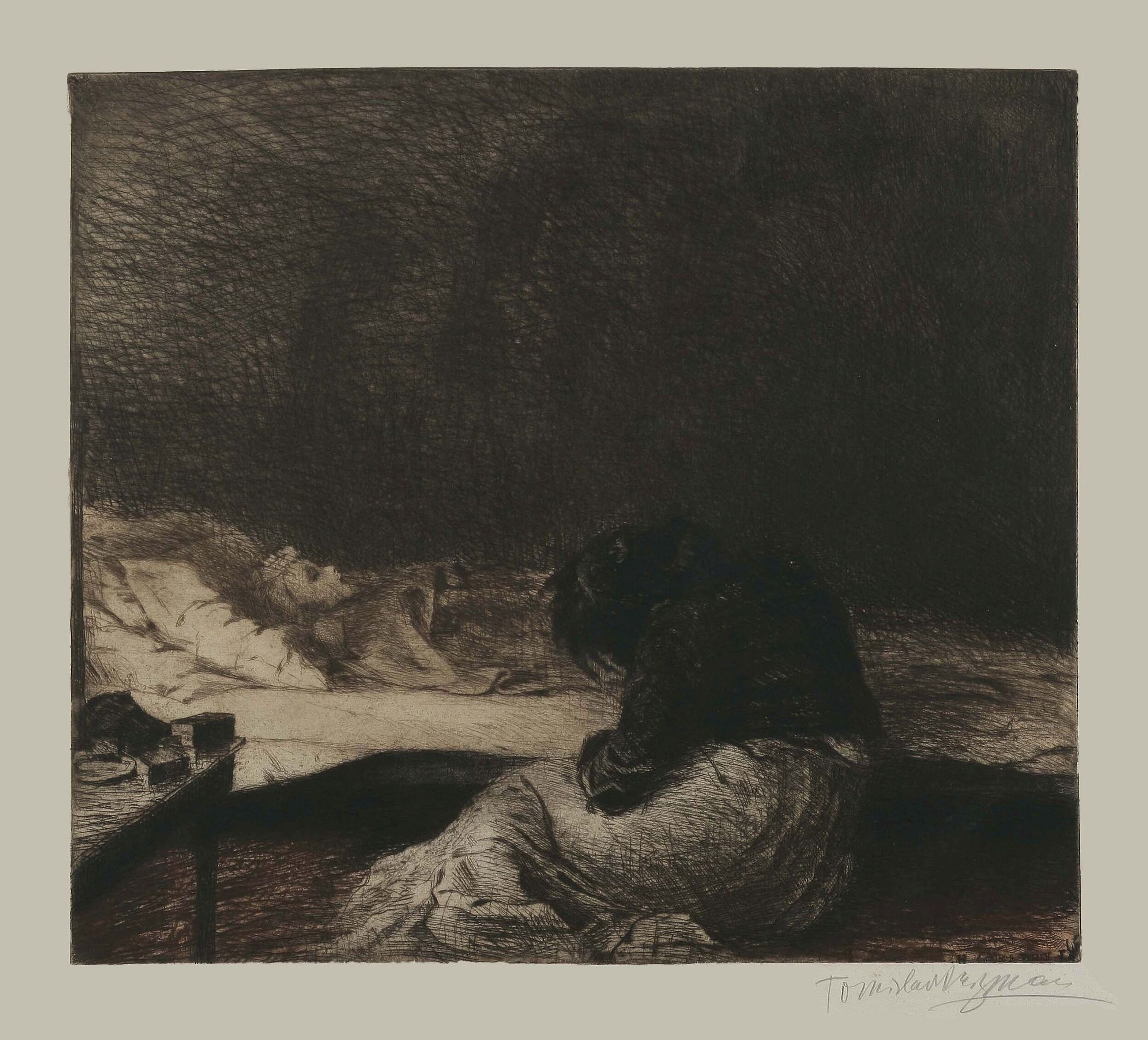 Mother and Child / Child on a Catafalque Tomislav Krizman’s Printmaking Anthology / From the Holdings of the Department of Prints and Drawings of CASA ← Marya Delvard in Profile / Stage Composition Dalmatian Shepherdess → Mother and Child / Child on a Catafalque, (1908) etching 486 x 546 / 674 x 806 mm; Bütten paper sign. bottom below print in pencil: Tomislav Krizman inv. no. KG HAZU 2344 ← Marya Delvard in Profile / Stage Composition Dalmatian Shepherdess →
