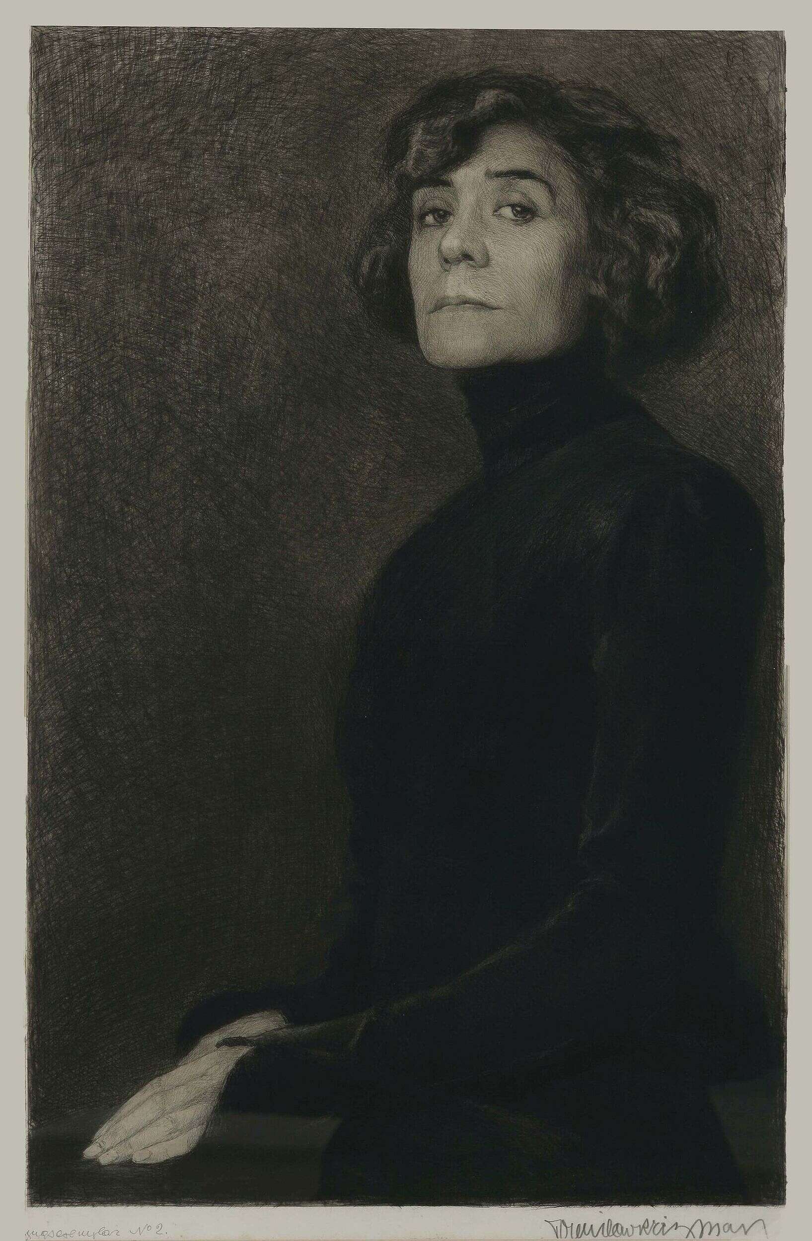 [12] The motif of Delvard’s chin and lips was incorporated even in the upper right-hand corner of the large-scale etching Self-portrait from 1908!