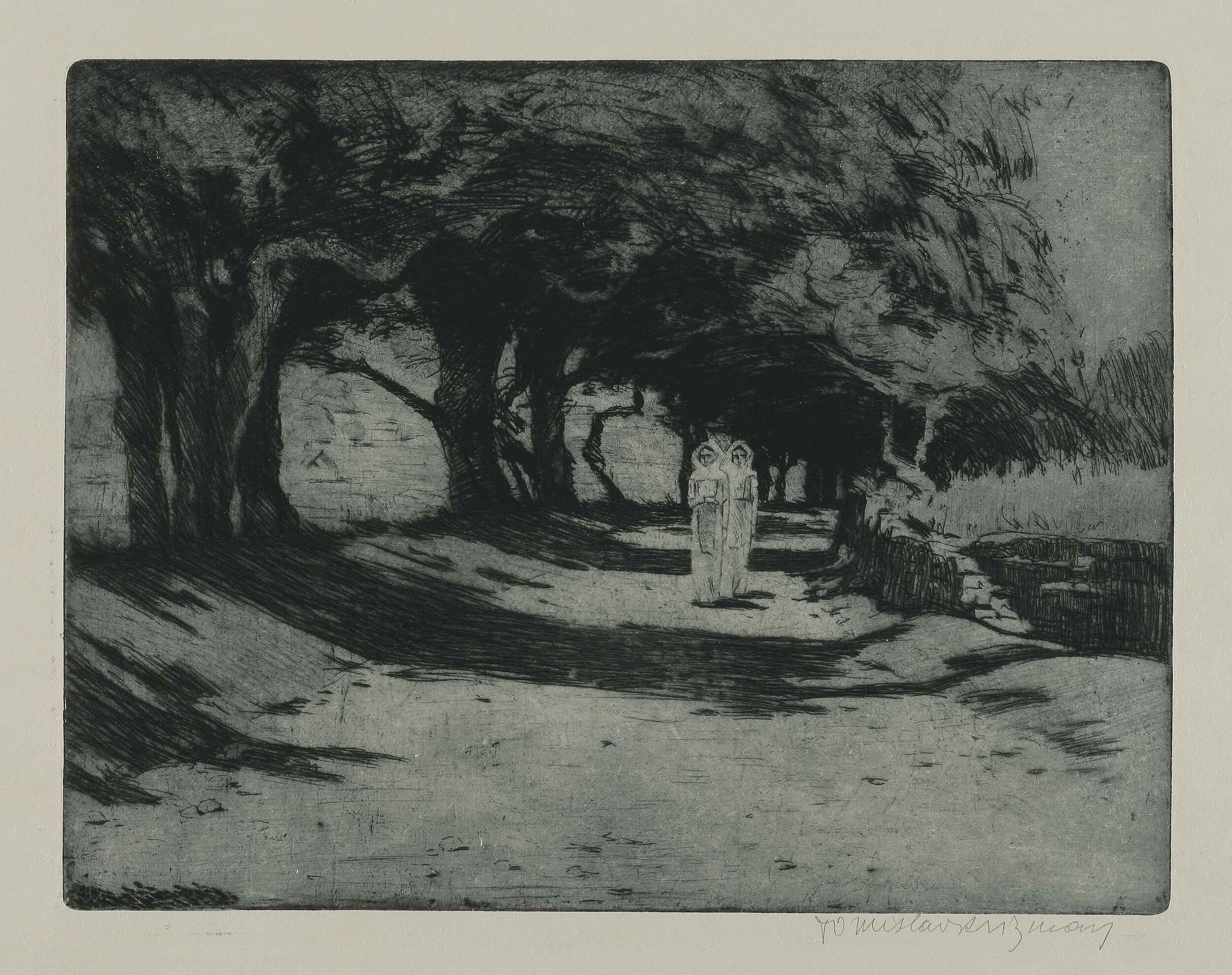 U aleji Grafička antologija Tomislava Krizmana / iz fundusa Kabineta grafike HAZU ← Kuće na stupovima u Bosni Oroslavlje, Bauernhof in Kroatien → U aleji, (1904.) bakropis 273 x 355 / 345 x 470 mm; tanki papir sign. ispod otiska d. olovkom: Tomislav Krizman inv. br. KG HAZU 2330 ← Kuće na stupovima u Bosni Oroslavlje, Bauernhof in Kroatien →